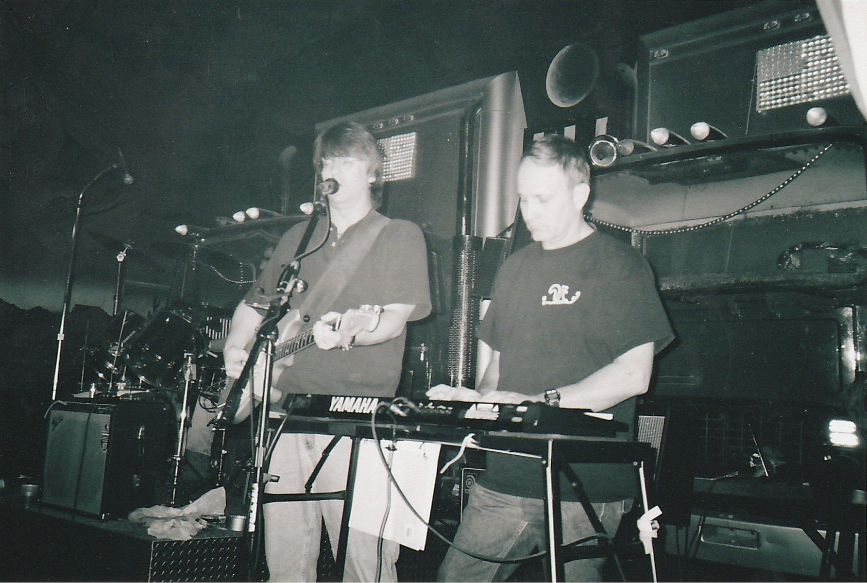 "Gimme an E"...Todd and I at a gig somewhere tuning up. Not sure where. Back in the day we didn't all have guitar tuners like now so we tuned with the piano.
