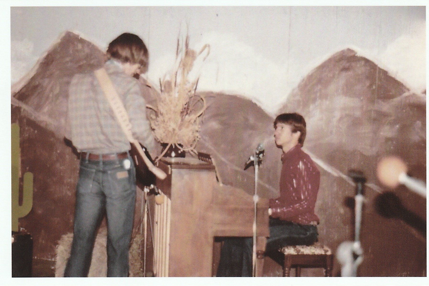 Performing at the talent competition at the AR State Fair, October 1982. Final day of competition, a Saturday. We had played 2 previous days to reach the finals