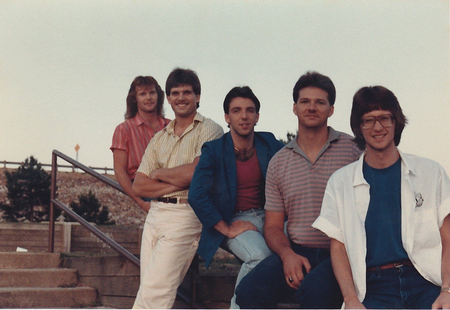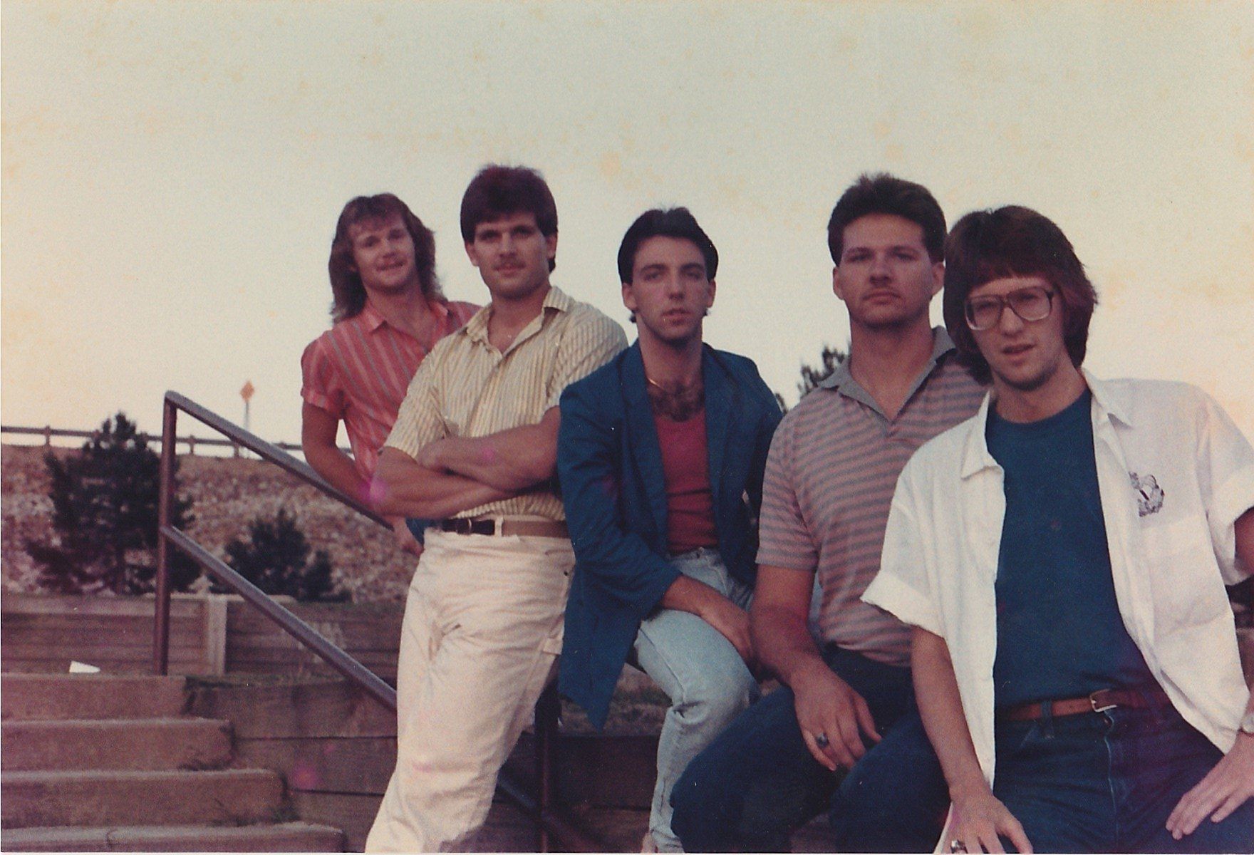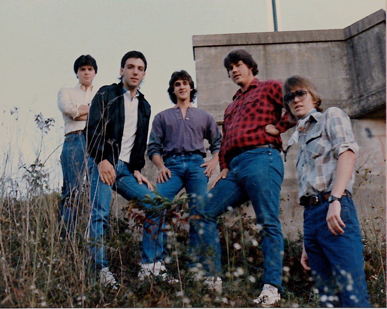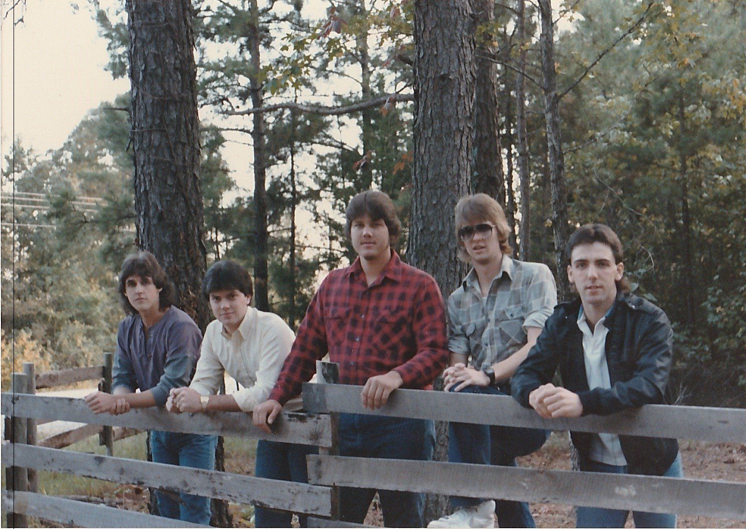 This is the final full time lineup of the band, circa 1987. From left: Scott "Rooster" Meeks, Mike Waggoner, Shawn Mangrum, James "Scooter" Dixon, Scott Arivett