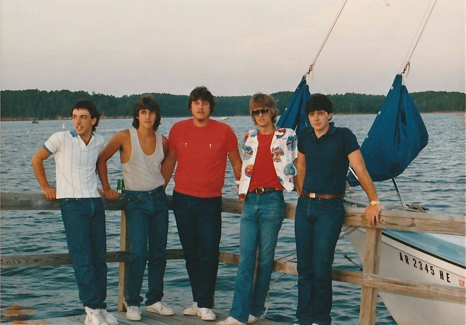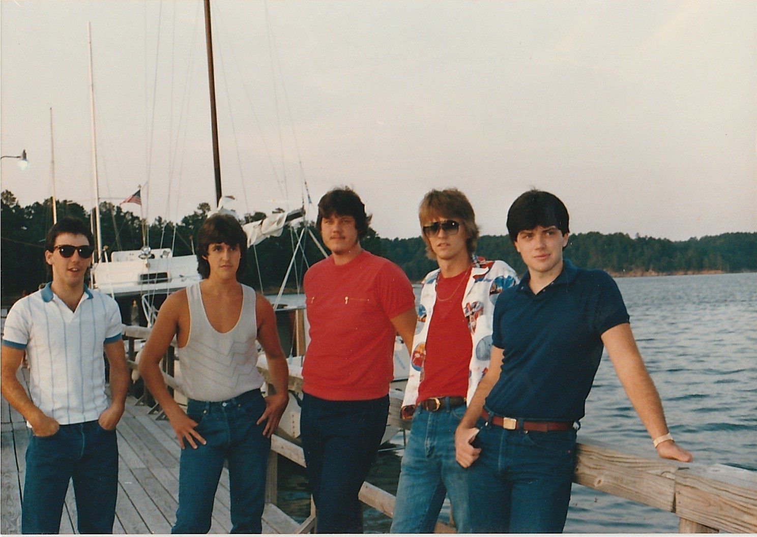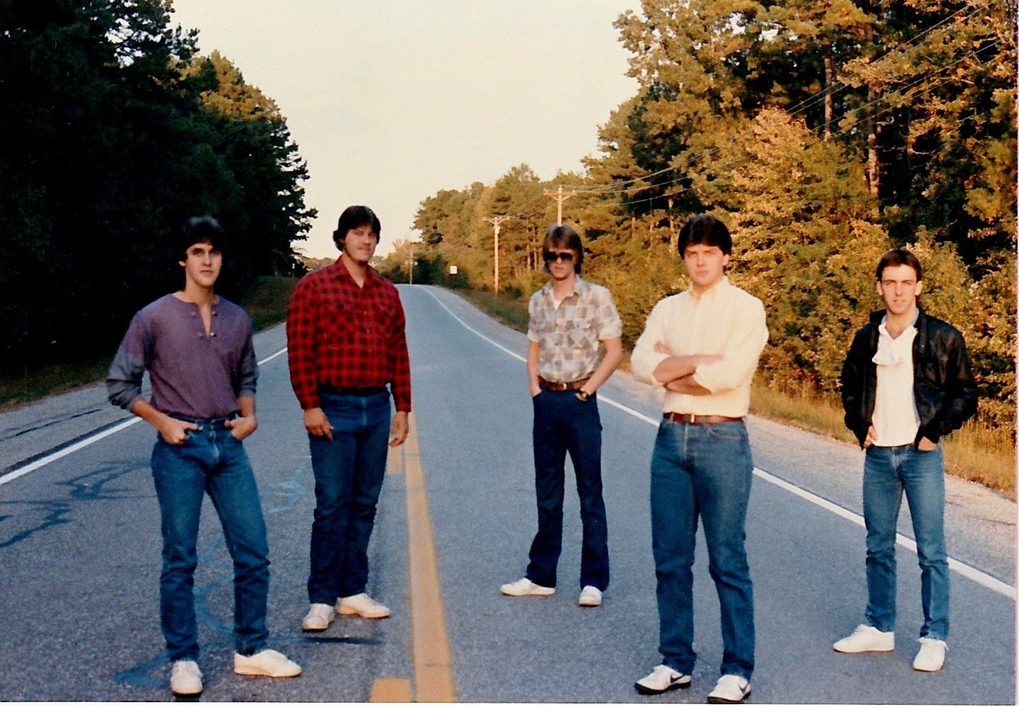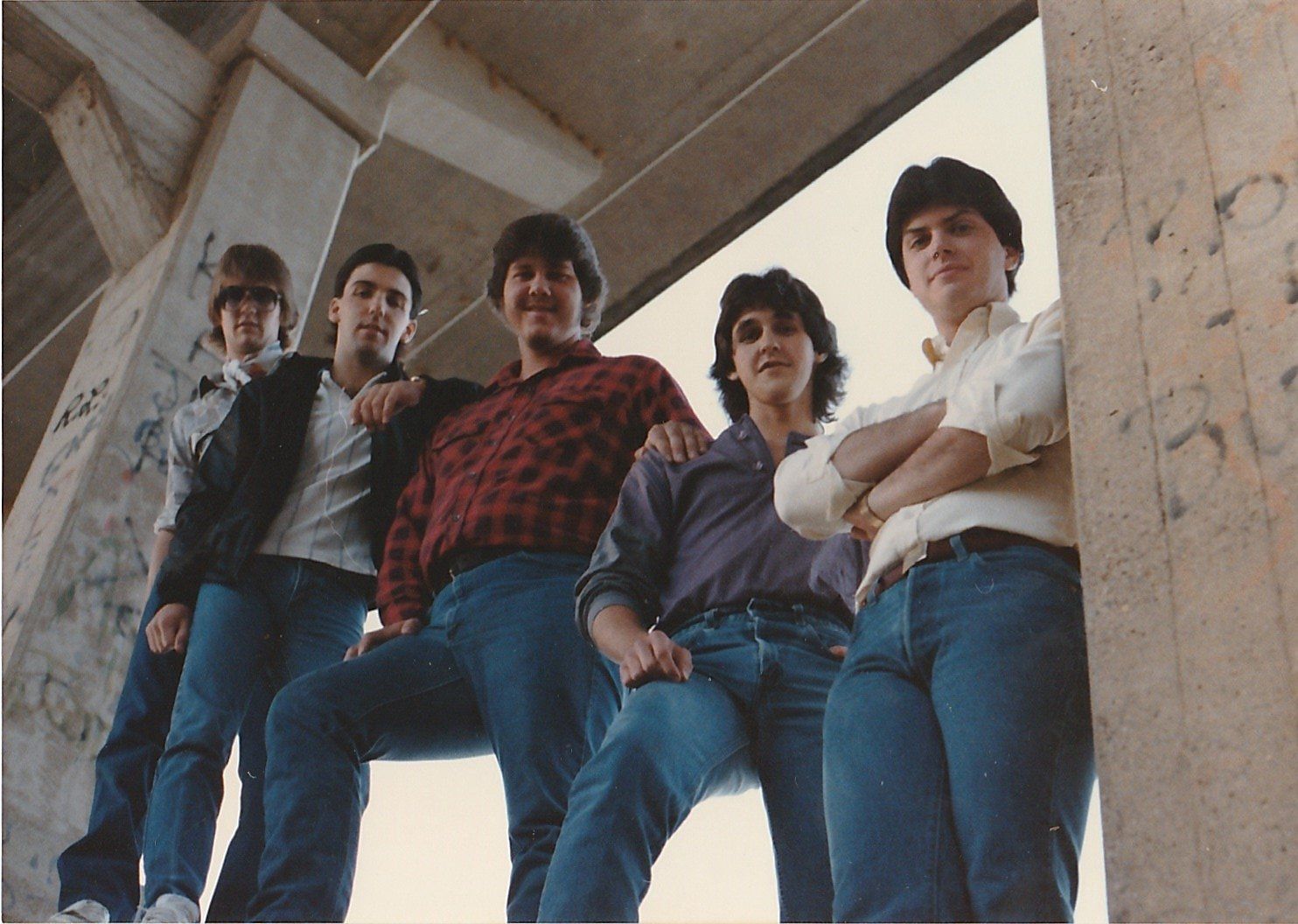 This is the final full time lineup of the band, circa 1987. From left: Scott "Rooster" Meeks, Mike Waggoner, Shawn Mangrum, James "Scooter" Dixon, Scott Arivett